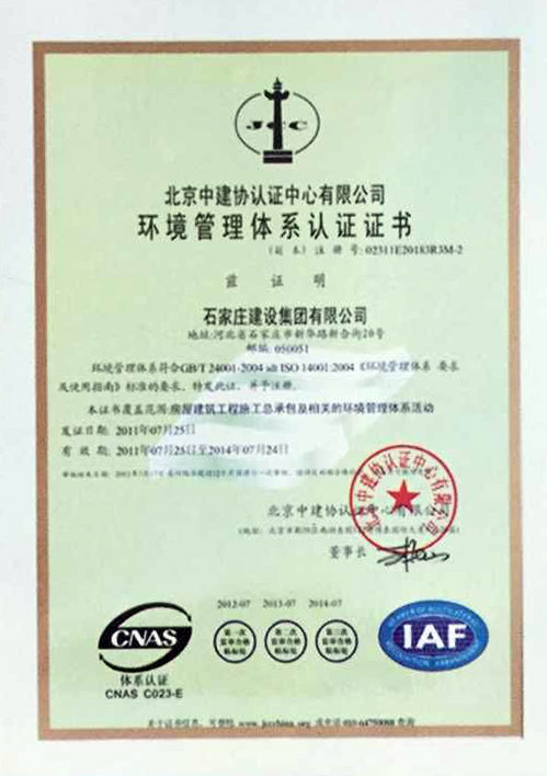 環(huán)境管理體系認(rèn)證證書(shū)